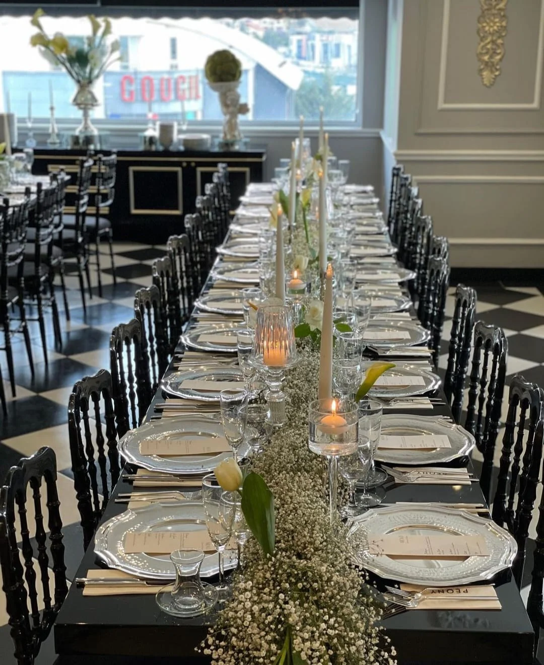 Düğün, nişan ve kurumsal yemekler için şık görünüm.